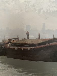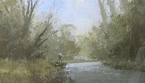 My father, Roy Perry RI, a landscape painter, often included anglers in his work. You could find these figures standing on a riverbank, fishing off a Thames barge, perched on the edge of a wharf. My mother always said looked like they were having a wee. She called them his ‘widdlers’ and they became a standing joke in the family.