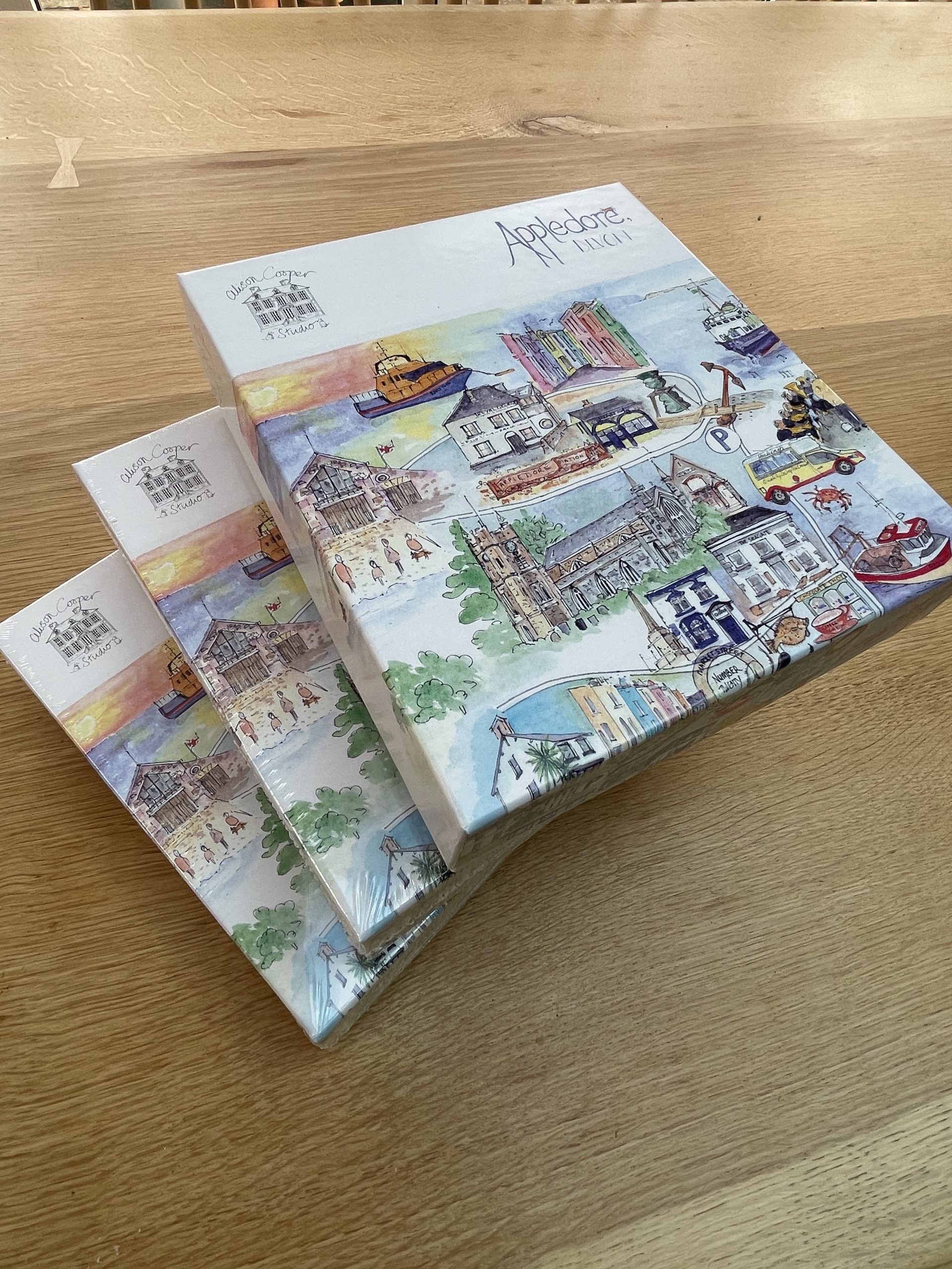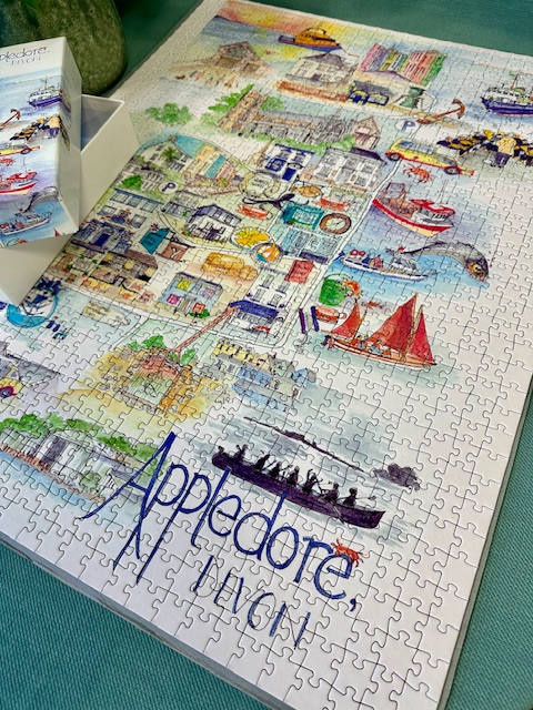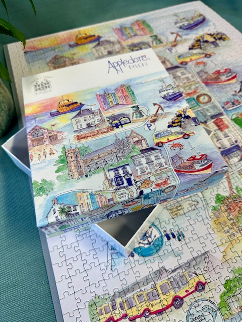 This limited edition 1000 piece jigsaw showcases the beautiful coastal Devonshire village of Appledore. A place very close to my heart. Famous for its beautiful pastel coloured streets, estuary views, shipbuilding, fishing, crabbing, ice cream, quayside, regatta, brass band… the list goes on. If you haven’t been there, do go.